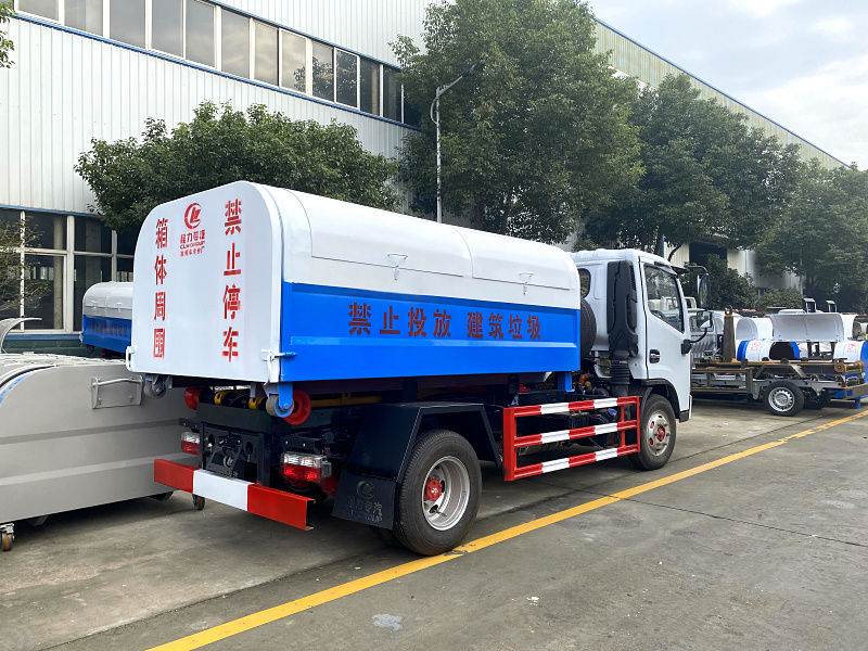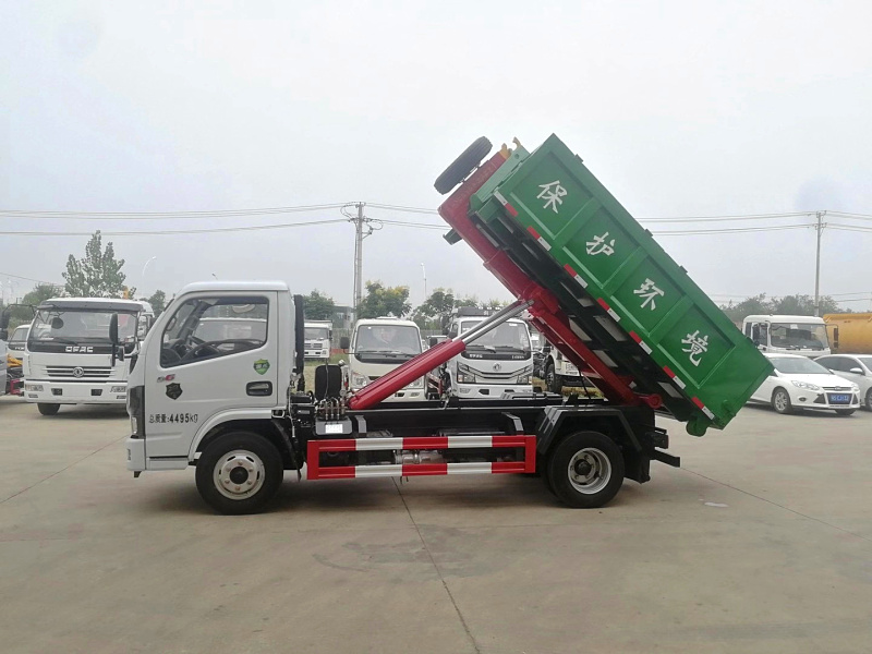 拉勾臂垃圾车又称为车厢可卸式垃圾车,主要用于市政环卫、物业管理等各种场所收集、运载各种垃圾,垃圾厢与底盘可彻底分离,具有结构合理,操作简便、稳定、使用效率高、密封性能好、倾倒方便等优点,能实现一台车与多个垃圾厢联合作业,循环运输,充分提高车辆的运输能力。实现一车配带多箱循环转运,高效、节能、节约成本。