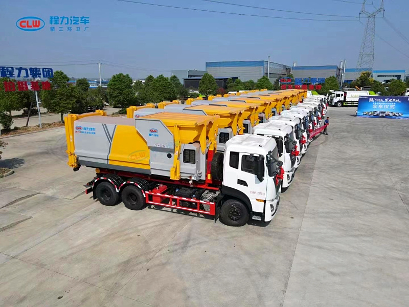 拉勾臂垃圾车又称为车厢可卸式垃圾车,主要用于市政环卫、物业管理等各种场所收集、运载各种垃圾,垃圾厢与底盘可彻底分离,具有结构合理,操作简便、稳定、使用效率高、密封性能好、倾倒方便等优点,能实现一台车与多个垃圾厢联合作业,循环运输,充分提高车辆的运输能力。实现一车配带多箱循环转运,高效、节能、节约成本。