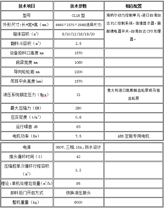 3.压缩箱主要技术参数与配置