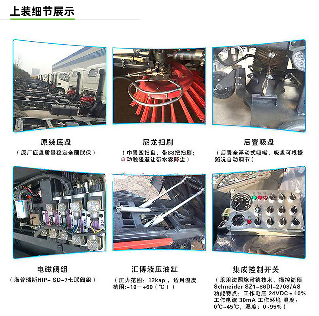 五十铃10方吸尘车上装配置:水箱3方,尘箱7立方,吸尘宽度3米,吸尘速度3-15公里每小时,吸入颗粒110mm,驾驶室内全电脑触屏控制,灰尘过滤器,进口脉冲除尘,车尾喷雾降尘装置。 适合场合:适合于中小型厂区路面除尘作业,无扬尘,可达到环保要求。