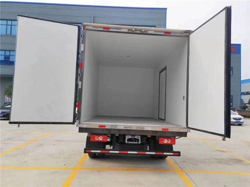厢体配置:厢体板采用市面上最先进技术-负压加热抽真空技术,保温性能达到国家A级标准厢体。内部尺寸为: 容积为 立方,厢体内外面料采用最新款纳米玻璃钢(不吸光、隔热性好、硬度强、抗氧化)厢体厚度为8.5cm ,内衬骨架为防锈处理优质轻钢型材镀锌管,保温材料为无空隙填充聚氨酯发泡,厢体底部为铝合金花纹板或选平面纳米玻璃钢,厢体采用镀锌不锈钢包角,加厚型铝合金包边,后门框为不锈钢,加厚型不锈钢后门]合页及锁件,全车所有不锈钢部位均使用食品级304不锈钢制造,厢体内部采用ED照明灯及厢体示宽灯。
