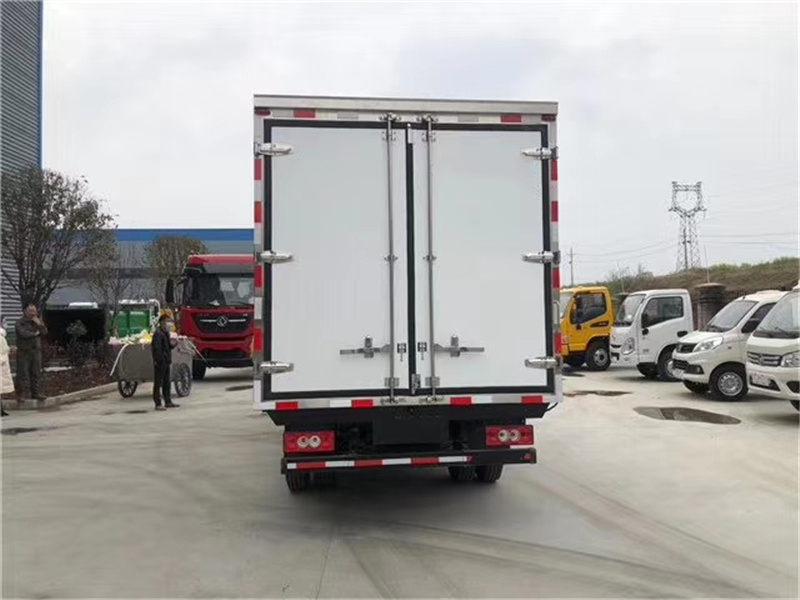 (2)厢板材质:内外壁板选用国内优质玻璃钢(不吸光、隔热性好、硬度强、抗氧化);中间保温层为XPS挤塑聚笨板;厢体厚度8CM。地板采用铝花纹板,门边条采用迷宫式橡胶密封条。