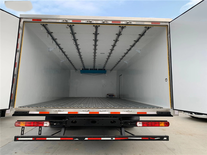 厢体配置:厢体板采用市面上最先进技术-负压加热抽真空技术,保温性能达到国家A级标准厢体。内部尺寸为: 容积为 立方,厢体内外面料采用最新款纳米玻璃钢(不吸光、隔热性好、硬度强、抗氧化)厢体厚度为8.5cm ,内衬骨架为防锈处理优质轻钢型材镀锌管,保温材料为无空隙填充聚氨酯发泡,厢体底部为铝合金花纹板或选平面纳米玻璃钢,厢体采用镀锌不锈钢包角,加厚型铝合金包边,后门框为不锈钢,加厚型不锈钢后门]合页及锁件,全车所有不锈钢部位均使用食品级304不锈钢制造,厢体内部采用ED照明灯及厢体示宽灯。